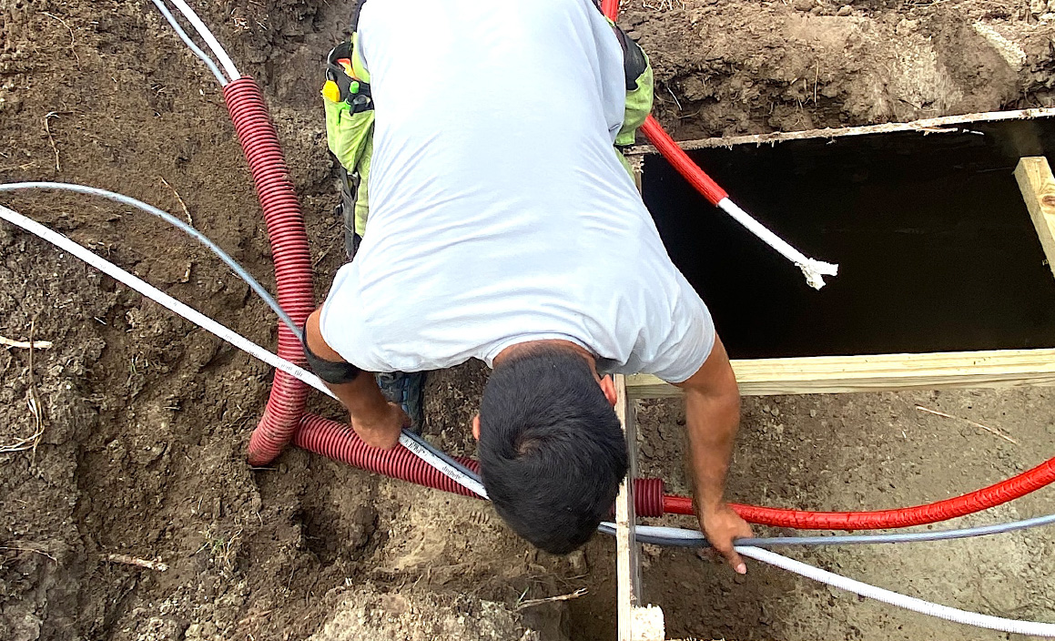 Geulen graven. Kabels trekken. Leidingen leggen. Alle voorbereidende werken om een zorgunit in Meerhout zorgeloos te kunnen aansluiten.
